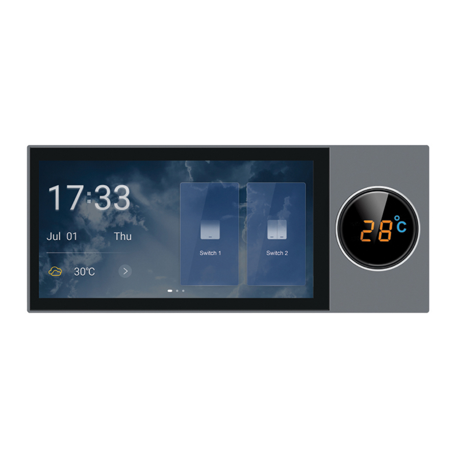 - With the 6-inch LCD screen, it dynamically presents the date and time, to intimately broadcast the daily weather on home page as your life assistant. You can also add common scenarios and devices to the home page for one-click operation.