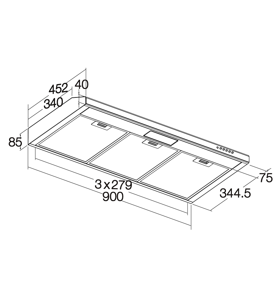 • Actual Dimension: W900 X D452 X H85mm