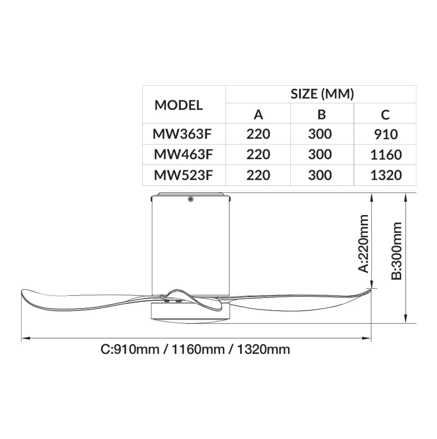 Air Volume: 3428CFM (MW363F) / 4534CFM (MW463F) / 7076CFM (MW523F)
